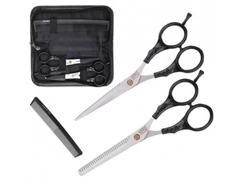 Poniks Zestaw nożyczki do strzyżenia + degażówki z grzebieniem w etui