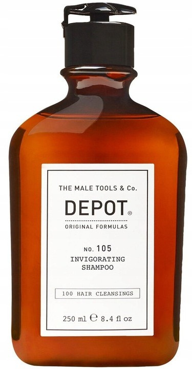 Szampon stymulujący Depot No. 105 przeznaczony jest do pielęgnacji włosów cienkich, słabych i wypadających. Kosmetyk ten zapobiega wypadaniu włosów, wzmacnia je i delikatnie oczyszcza oraz przywraca równowagę włosów oraz skóry głowy. Doskonale sprawdzi się w codziennym użytkowaniu. W składzie kosmetyku znajdują się organiczne ekstrakty, proteiny ryżowe i kompleksy witaminowe. Produkt wolny jest od SLESów.
