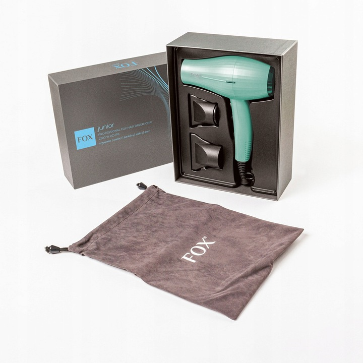 Profesjonalna, kompaktowa suszarka do włosów Fox Junior niech nie zmyli Cię swoim rozmiarem. Ta mała, poręczna suszarka do włosów ma moc aż 2200W. Urządzenie pozwala na dostosowanie temperatury i siły nadmuchu. Silnik AC gwarantuje niezawodną pracę przez lata. Sprzęt sprawdzi się zarówno w użytku domowym, jak i w pracy fryzjera, na przykład podczas wyjazdów. Suszarka posiada jonizację - dzięki czemu włosy są lśniące i nie ucieka z nich wilgoć. Przycisk zimnego powietrza przyda się na koniec stylizacji.