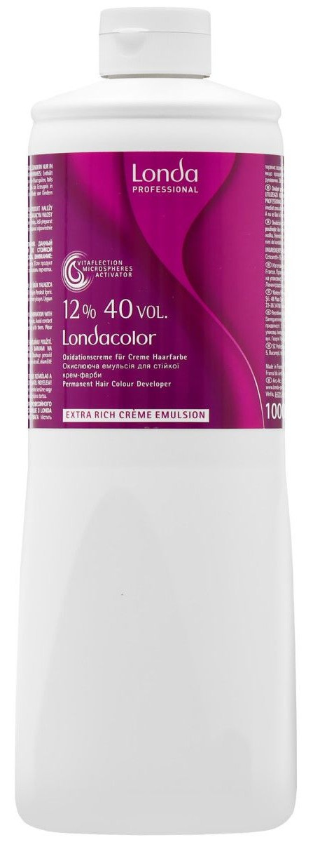 Emulsja utleniająca do farby Londa Color Permanent. Koloryzacja Londa to gwarancja 100% pokrycia siwych włosów (przy siwiźnie do 50%). Dzięki delikatnemu aromatowi, drażniący zapach aromatu nie jest wyczuwalny. Dzięki temu koloryzacja jest jeszcze przyjemniejsza. Po połączeniu z oksydantem aktywowane są unikalne Vitaflection Microspheres. Pozwala to na aplikację nasyconych kolorem molekuł we wnętrze włosa. Farba posiada kremową emulsję, która bogata jest w woski i lipidy. Woski i lipidy otulają włosa, odżywiając go i zapewniając mu blask.