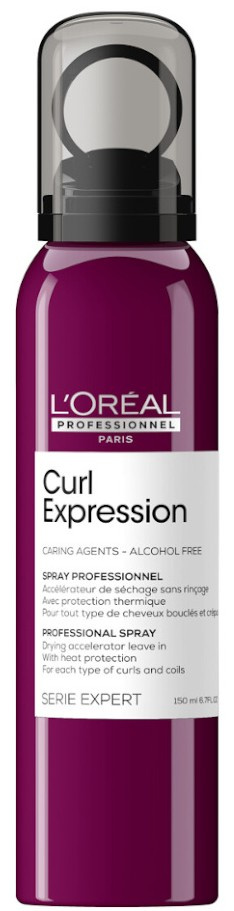 Spray do suszenia włosów kręconych Loreal Curl Expression sprawia, że czynność ta zajmuje znacznie mniej czasu! Spray dodatkow pielęgnuje włosy i oferuje ochronę przed puszeniem do 48 h. Ponadto działa termoochronnie - chroni włosy przed zniszczeniami wskutek działania temperatury do 230 stopni Celsjusza. Formuła wzbogacona o składniki pielęgnujące loki i fale, dla jeszcze lepszego nawilżenia i wzmocnienia. Bezalkoholowa formuła. Unikalny pierścieniowy aplikator zapewnia drobną dyspersję kropel.