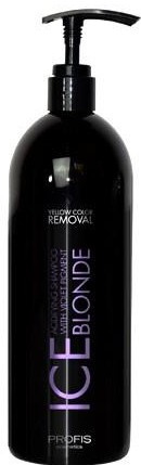 ICE BLONDE szampon 1000 ml firmy Profis - nadaje popielaty odcień włosom blond. Utrwala chłodny, platynowy odcień włosów i chroni go przed wymywaniem. – Składniki kondycjonujące dodają włosom miękkości, zapobiegają elektryzowaniu i ułatwiają rozczesywanie.