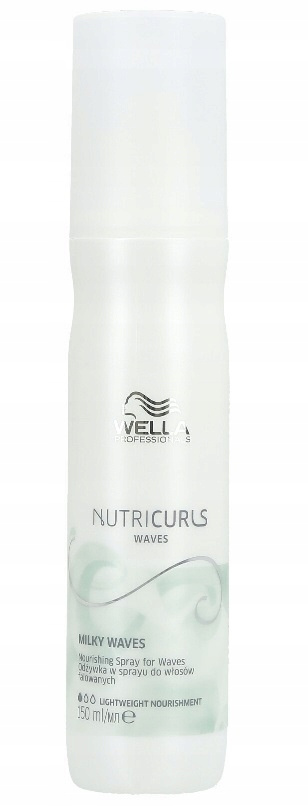 Chcąc zapanować nad kręconymi kosmykami, warto postawić na lekką odżywkę bez spłukiwania Wella Nutricurls Milky Waves w sprayu. Jest to produkt łatwy w użyciu, który w swoim składzie zawiera kompleks Nourish-In, zapewniający podkreślenie skrętu i ochronę przed puszeniem. Olejek jojoba optymalnie nawilża, chroni włosy przed czynnikami zewnętrznymi i zapobiega elektryzowaniu się włosów. Ekstrakt z otrębów pszennych nadaje pasmom miękkości i elastyczności. Odżywka Wella Nutricurls w sprayu odżywia loki, sprawiając, że stają się one łatwiejsze w stylizacji, a ułożona fryzura utrzymuje się dłużej.
