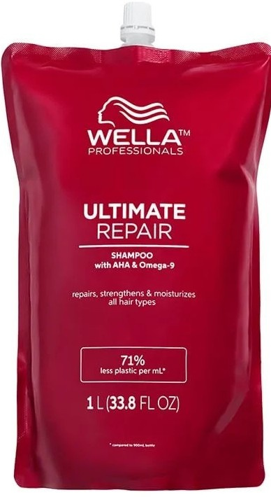 Profesjonalny szampon odżywczy do włosów Wella Professional Ultimate Repair. Przeznaczony do pielęgnacji każdego typu włosów, również zniszczonych, normalnych, farbowanych czy puszących się. nikalna formuła Metal Purifier działa jak detoks, skutecznie usuwając z powierzchni włosów szkodliwe metale oraz wszelkie zanieczyszczenia. Specjalnie dobrane składniki (kwasy AHA i omega-9) zawarte w szamponie Ultimate Repair działają również wzmacniająco na powierzchni i wewnątrz włosów i sprawiają, że włosy zyskują blask, gładkość oraz niebywałą miękkość.